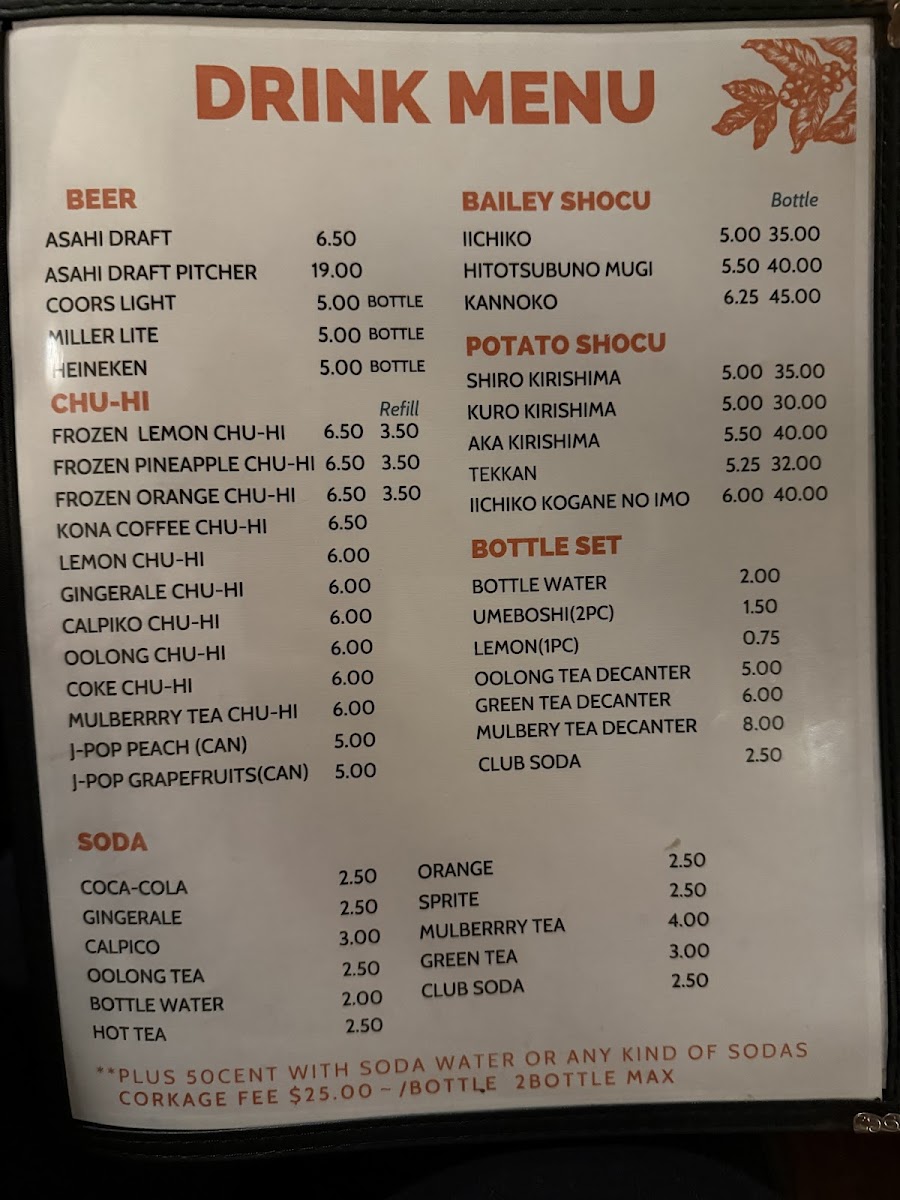 The menu suits a variety of moments—from leisurely dinners to casual gatherings over drinks such as Asahi Super Dry draft beer or refreshing house-made juices. The combination of familiar flavors and authentic preparations blends seamlessly with the cozy, Japanese-style izakaya setting, encouraging a relaxed pace and shared enjoyment around the table.